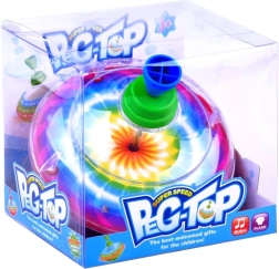 Tradičná hračka v modernom prevedení: farebné káča, ktoré sa pri roztočení rozsvieti a prehráva veselú hudbu. Jednoduché ovládanie stlačením piestu roztočí káču okolo vlastnej osi a pod priesvitným krytom vytvorí očarujúci dúhový efekt. Odolné plastové prevedenie, ideálne na rozvoj jemnej motoriky a koordinácie.