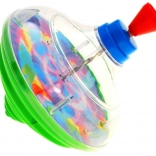 Priesvitná kupola dovolí sledovať farebný vír vo vnútri, zatiaľ čo pevný plast zaisťuje odolnosť hračky.