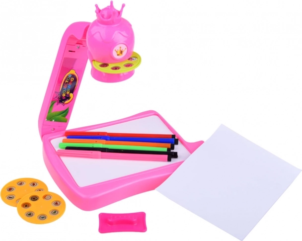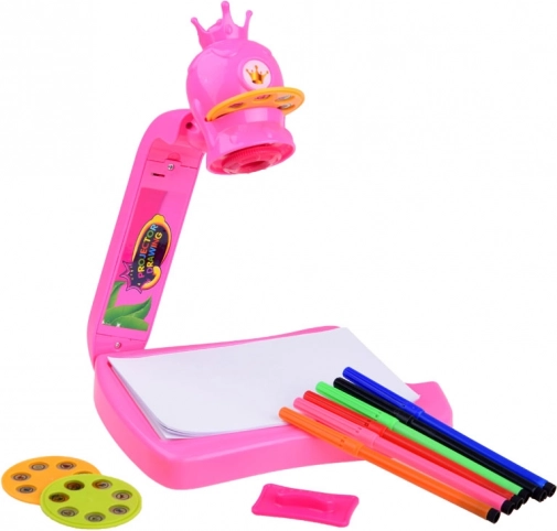 Rozvíjajte detskú fantáziu s týmto ružovým projektorom na kreslenie s korunkou. Vďaka premietaným šablónam a sade fixiek si malí umelci ľahko osvoja obťahovanie a tvorenie. Sada ponúka 3 disky so vzormi, 6 farebných fixiek, zošit na maľovanie a kompaktnú skladaciu konštrukciu pre jednoduché uloženie.