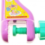 Konštrukcia kolotoča je plastová a hračka sa otáča automaticky. Hudobný strojček je v tvare pastelového domčeka a ponúka možnosť prispôsobiť hlasitosť prehrávanej melódie.
