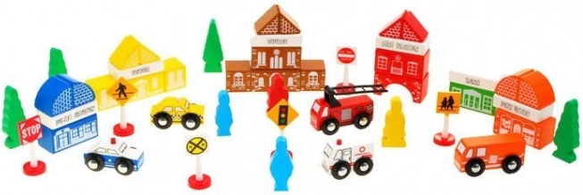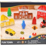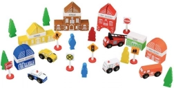 Kocky majú príjemnú textúru a sú primerane veľké pre malé detské ruky. Príklady veľkostí: budovy (cca 3cm x 6cm x 3cm), sanitka (3,5cm x 5cm x 3cm), hasičské auto (5,5cm x 8,5cm x 3cm), polícia (4cm x 6cm x 3cm), postavičky (5cm x 2,5cm x 1cm), dopravné značky (vysoké 7cm) vyrobené z plastu.