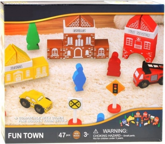 Obsahuje kocky pre stavbu celej dediny vrátane hasičskej stanice, školy a banky.