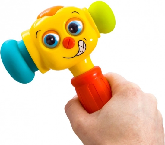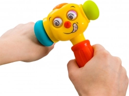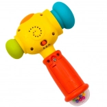 Stlačte tlačidlo na hlave a kladivko prehrá 5 veselých melódií, pričom svetielko začne blikať. Každé ťuknutie navyše spúšťa zvuky aj svetlá, ktoré deti motivujú k ďalšej hre.