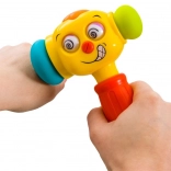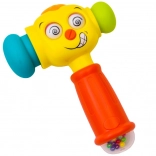 Veselé interaktívne kladivko zaujme deti farebným dizajnom, vtipnou tvárou a kombináciou svetelných aj zvukových efektov. Pri stlačení horného tlačidla prehrá 5 zábavných melódií a počas hry sa rozsvieti svetielko na hlave. Každé ťuknutie navyše spúšťa efekty, ktoré podporujú prirodzenú zvedavosť a motivujú k ďalšiemu objavovaniu.