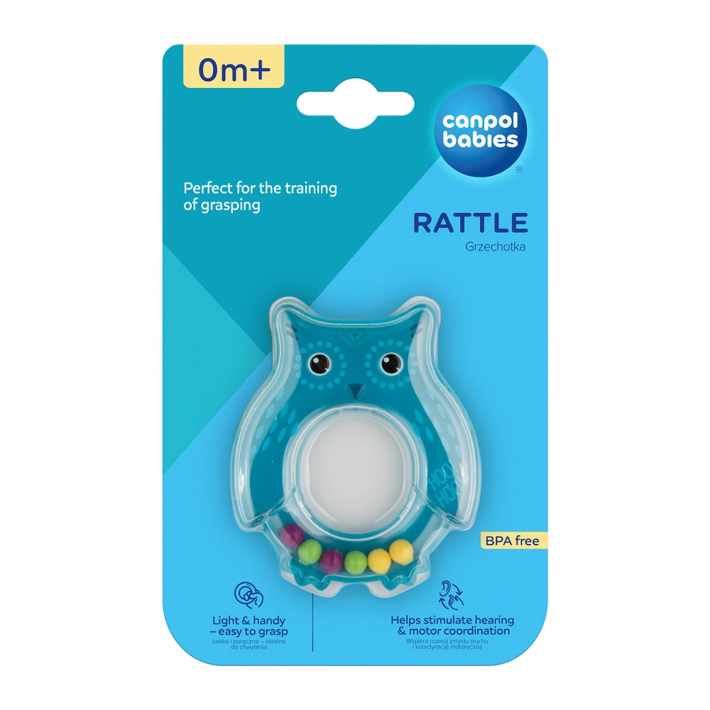 Hrkálka je určená pre najmenšie deti. Atraktívne tvary a intenzívne farby upútajú pozornosť dieťaťa. Pohyblivé alebo zvukové diely zoznamujú dieťa so svetom zvukov a farieb. Hrkálky sú vyrobené z bezpečných materiálov (bez ostrých hrán). Návod na použitie: Udržiavajte v čistote. Umývajte kefkou v teplej vode jemným čistiacim prostriedkom, prelejte vriacou vodou. Nevyvárajte, nesterilizujte. Pozor! Dôležité pre bezpečnosť a zdravie vášho dieťaťa! Pred každým použitím skontrolujte kvalitu výrobku. Pri prvých známkach opotrebenia alebo poškodenia výrobok ďalej nepoužívajte – vymeňte ho za nový. Hrkálka spĺňa požiadavky: Smernica Európskeho parlamentu a Rady 2009/48/ES o bezpečnosti hračiek, EN 71 - 1 Bezpečnosť hračiek - Časť 1: Mechanické a fyzikálne vlastnosti, EN 71 - 2 Bezpečnosť hračiek - Časť 2: Horľavosť, EN 71 - 3 Bezpečnosť hračiek - Časť 3: Migrácia určitých prvkov.