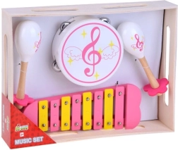 Táto viaczložková hudobná sada je perfektnou voľbou pre malých muzikantov aj celú partiu kamarátov. Nástroje sú vyrobené z kvalitného dreva, majú príjemný zvuk a lákavý dizajn v ružových a žltých tónoch. Deti si vďaka nim prirodzene osvoja rytmus, koordináciu a cit pre hudbu.