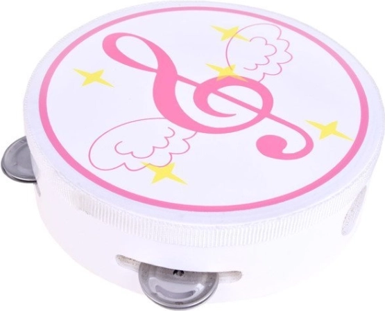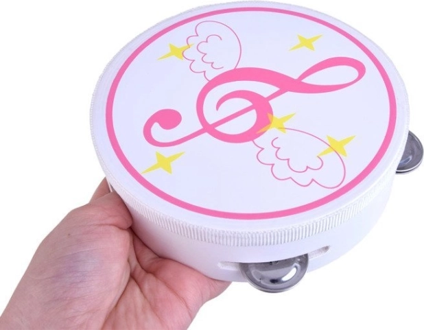 Ľahká tamburína s kovovými rolničkami a možnosťou bubnovania podporuje rytmické cítenie a koordináciu ruky.