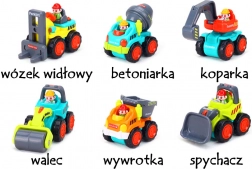 Objavte radosť z hry s našimi stavebnými autami, ktoré zahŕňajú modely ako bagre, vysokozdvižné vozíky, valce, buldozéry, miešačky a vyklápačky. Každé autíčko je vyrobené z plastu a je vybavené pohyblivými časťami, ktoré prinášajú realistickú zábavu.