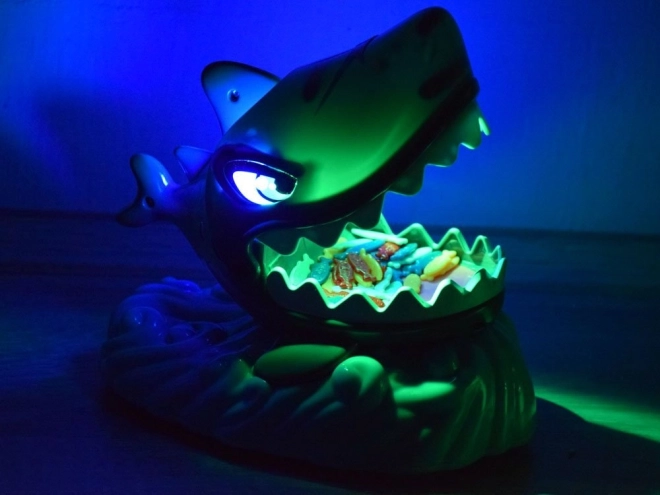 Žralok so svietiacimi ústami i očami pridáva na dramatickosti. Bezpečné zuby zabezpečia bezstarostnú hru.
