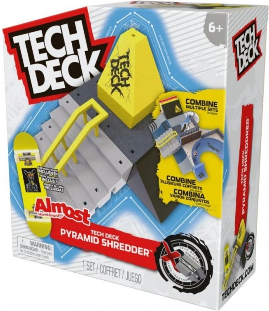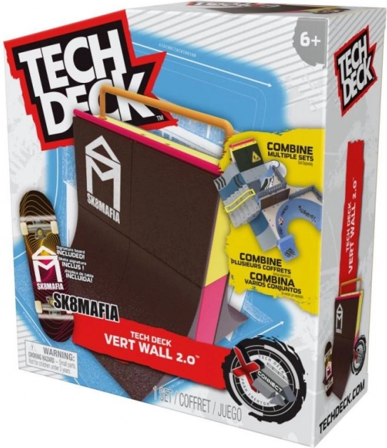 Súčasťou balenia je exkluzívny fingerboard TOY MACHINE – Daniel Lutheran s autentickou grafikou, takže môžete hneď začať jazdiť. Kombinujte park s ďalšími rampami X‑Connect (napr. Bowl Builder alebo Nyjah Skatepark) a postavte si vlastný megapark.