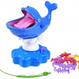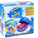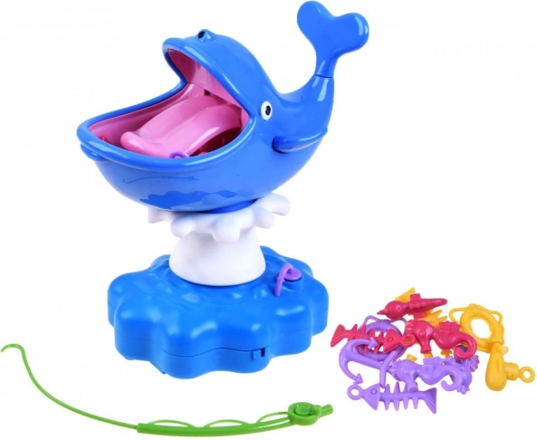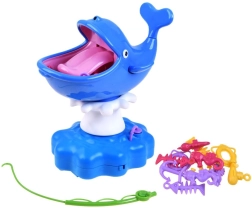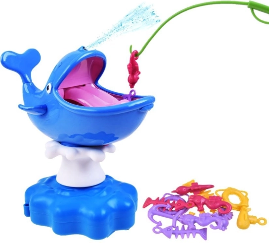 Veselá rodinná vodná hra s modrou veľrybou prinesie deťom aj dospelým veľa radosti a smiechu. Cieľom je vyloviť poklady z tlamy veľryby pomocou prúta, ale pozor – nesmiete sa dotknúť jazyka! Keď sa to stane, veľryba nečakane postrieka vodou a hráč vypadáva z kola. Vyhráva ten, kto uloví najviac „morských pokladov“.