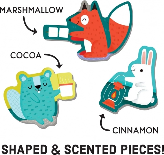 Ponorte sa do sveta lesných kamarátov pri táboráku. Toto voňavé puzzle prináša nielen radosť zo skladania, ale aj zábavný zmyslový prvok – tri špeciálne dieliky voňajú po marshmallow, kakau a škorici. Vďaka sýtym farbám, matnej povrchovej úprave a hladkej zadnej strane sa dieliky príjemne držia a skvele do seba zapadajú.