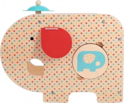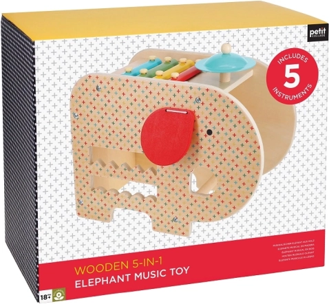 Zoznámte svoje ratolesti s rytmom a zvukom vďaka tomuto všestrannému drevenému slonovi. Obsahuje päť rôznych herných možností, ako je hranie na xylofón, bubienok, činel a ďalšie.