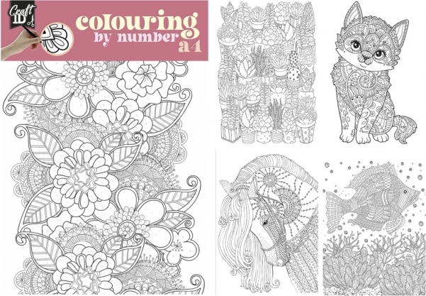 - Päť detailne navrhnutých obrázkov na maľovanie podľa čísel.