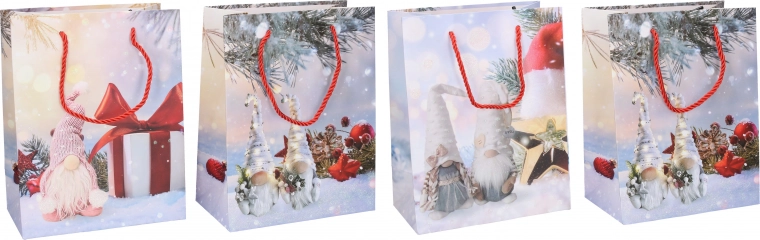 Zjednodušte si balenie darčekov s touto vianočnou darčekovou taškou vo veľkosti S. Rozmery 24 × 18 × 10 cm sú ideálne na menšie darčeky, kozmetiku či doplnky. Štyri rôzne motívy navodia tú pravú sviatočnú atmosféru.