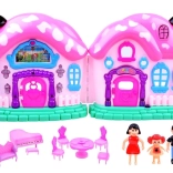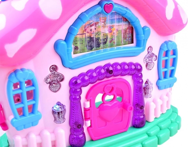 Zábavné prvky zahŕňajú štekanie psa, veselú melódie a svetelné efekty, ktoré dokážu deti skutočne vtiahnuť do hry. Vďaka bohatému vybaveniu nábytkom deti môžu usporiadať svoj domček podľa libosti.