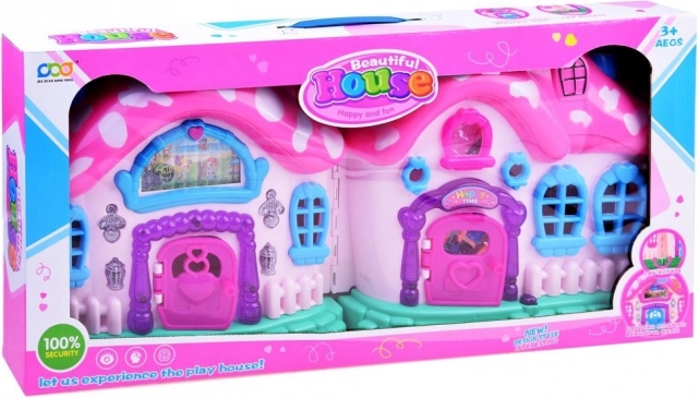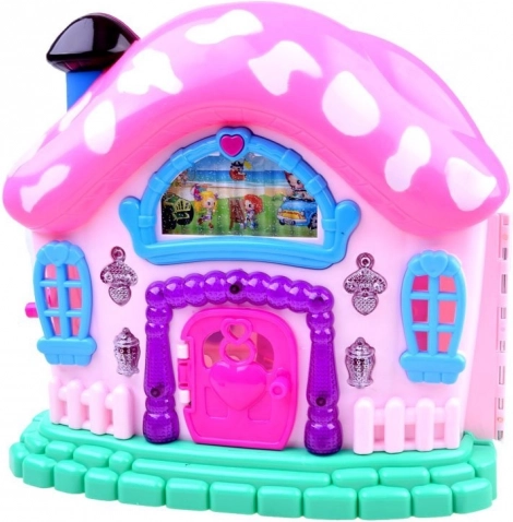 Unikátny dizajn v tvare hubičky s ružovou strechou a bielymi bodkami vytvára očarujúcu atmosféru pre hru.