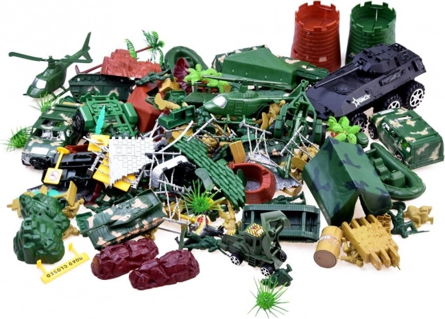 Veľká sada vojenských hračiek pre epickú a kreatívnu hru. Obsahuje široký výber tankov, vozidiel, vojakov a ďalšieho vybavenia, ktoré prináša hodiny zábavy a imaginatívnej hry.