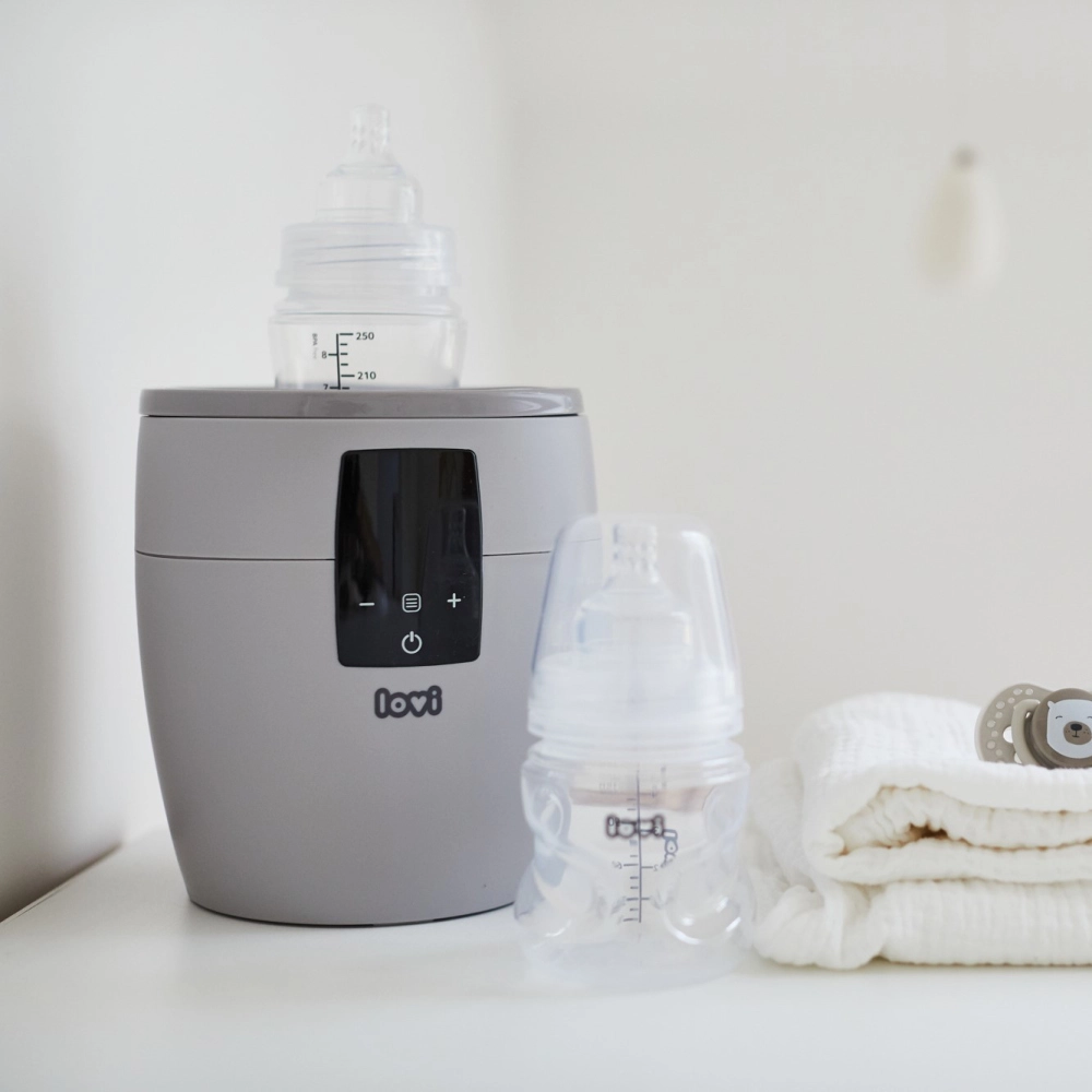 Ohrievač fliaš LOVI 4 v 1. Rýchle a rovnomerné ohrievanie. Intuitívne ovládanie na prehľadnej obrazovke. 4 funkcie v troch režimoch: BOTTLE mode – ohrievanie tekutín vo fľaši, rozmrazovanie pokrmov uchovávaných vo vrecku. Udrží požadovanú teplotu až 10 hodín. HOT mode – rýchly ohrev pokrmu + funkcia sterilizácie fliaš a príslušenstva. DINNER mode – udrží požadovanú teplotu až 3 hodiny. Bezpečný – automatické vypnutie pri absencii vody v režime HOT. V balení odmerka na vodu. Ohrievač Lovi predstavuje ideálny a bezpečný spôsob ohrievania pokrmov. Obsahuje termostat, ktorý udržiava nastavenú teplotu veľmi dlhý čas. Chráni pokrm pred prehriatím a stratou cenných vitamínov a minerálov. Super rýchly ohrievač LOVI automaticky nastaví dobu ohrevu pokrmu bez ohľadu na to, či je pokrm chladený, zmrazený alebo izbovej teploty. Ohrievač Lovi je určený na ohrievanie pokrmov v nasledujúcich typoch fliaš alebo pohárov: • vo fľašiach Lovi a vo väčšine iných fliaš so širokým hrdlom • v klasických fľašiach, • v pohároch s hotovým pokrmom pre deti. Maximálna šírka fľaše vhodnej do tohto ohrievača je 6,5 cm. 4 funkcie v 1 – ohrieva, udržiava teplotu, rozmrazuje a sterilizuje parou. Rýchly – ohreje pokrm už za 2 minúty, čo ho radí pred väčšinu ohrievačov dostupných na trhu. *80 ml mlieka/vody s počiatočnou teplotou 21 °C. Univerzálny – kompatibilný s väčšinou dojčenských fliaš dostupných na trhu. Bezpečný – automatické vypnutie pri absencii vody v režime HOT. Ohrievač spĺňa požiadavky: Smernica Európskeho parlamentu a Rady 2006/95/ES o harmonizácii právnych predpisov členských štátov týkajúcich sa elektrických zariadení určených na používanie v určitých medziach napätia. Smernica Európskeho parlamentu a Rady 2011/65/EÚ o obmedzení používania niektorých nebezpečných látok v elektrických a elektronických zariadeniach. Smernica Európskeho parlamentu a Rady 2004/108/EÚ o aproximácii právnych predpisov členských štátov týkajúcich sa elektromagnetickej kompatibility. Upozornenie: Presné inštrukcie k vhodnej a správnej údržbe produktu nájdete v používateľskej príručke.