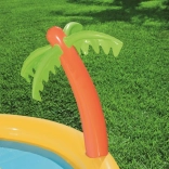 Vstavaný rozprašovač uprostred bazénika vytvorí spršku vody – stačí pripojiť bežnú záhradnú hadicu a zábava môže začať.