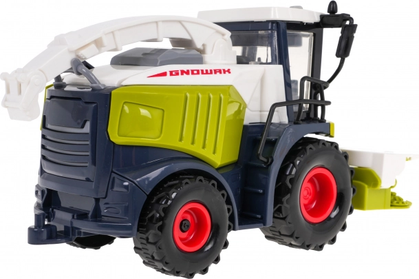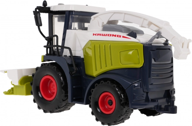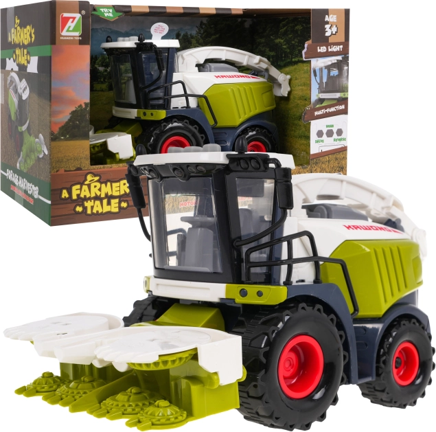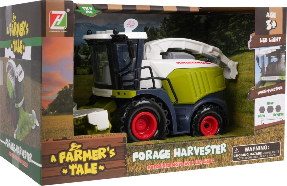 Interaktívny kombajn so zvukovými a svetelnými funkciami a pohyblivými časťami je určený pre malých poľnohospodárskych nadšencov od 3 rokov. Kombajn je vyrobený v farbách typických pre tento typ strojov a je vybavený žacou lištou a podávačom obilia. Stroj má otočné kolesá s dezénom a „presklenú“ kabínu. Kombajn vydáva zvuky motora, klaksónu a výstrahy a na streche je umiestnený zvukový panel s tlačidlami. Zvuky sú sprevádzané blikajúcimi LED svetlami na hornej časti kabíny. Kombajn sa po zemi pohybuje plynule vďaka treciemu pohonu. Hračka je napájaná 3 x 1,5 V batériami AG13, batérie sú súčasťou balenia. Špecifikácia: .- kombajn jazdí dopredu aj dozadu, .- veľké kolesá s predným trecím pohonom, .- zvukové funkcie: chod motora, klaksón, výstražné signály, .- svetelné funkcie: funkčné predné LED svetlá, .- zdvíhanie a spúšťanie žacej lišty (manuálne), .- sklápanie bočníc žacej lišty (ručné), .- otočné kolieska na čelnej strane (ručné), .- zdvíhanie a spúšťanie bočných klapiek nad zadnými kolesami (manuálne), .- zdvíhací a o 360 stupňov otočný podávač obilia (manuálny), .- zdvíhací a o 360 stupňov otočný žľab na obilie na podávači (ručný), .- hák na zadnej strane kombajnu. . |