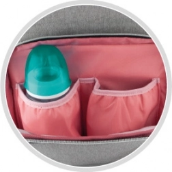Integrované termo vrecko udrží nápoj dlhšie v požadovanej teplote a popruhy umožnia jednoduché uchytenie batohu na kočík.