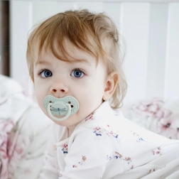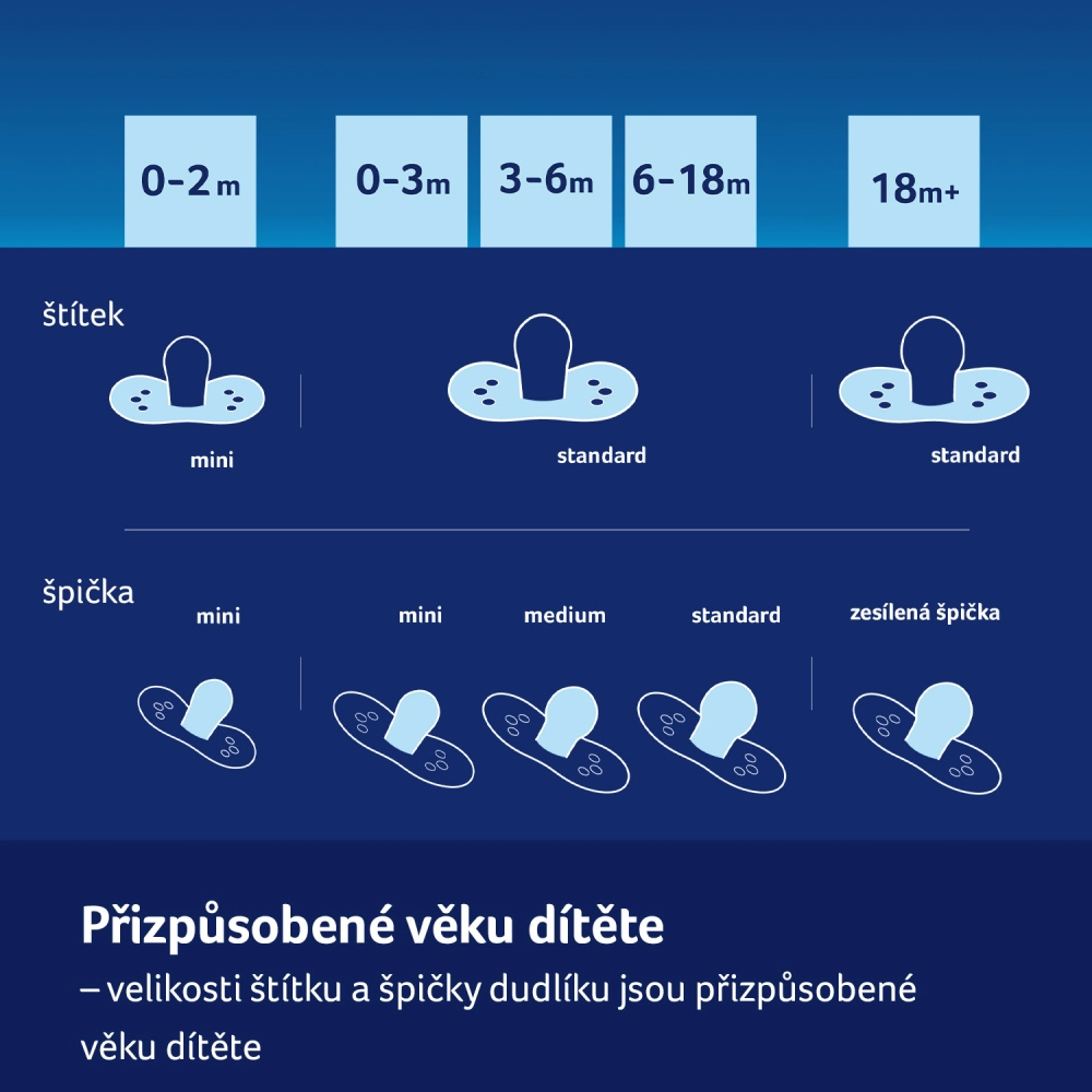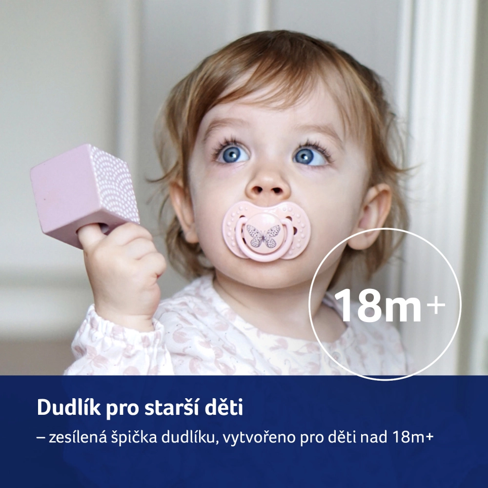 Dynamický cumlík LOVI bol vytvorený v spolupráci s logopédmi s cieľom zabezpečiť prirodzený a zdravý vývoj podnebia, zubov a ďasien dieťaťa. Silikónový symetrický dynamický cumlík LOVI bol klinicky testovaný. Všetky cumlíky LOVI neobsahujú bisfenol A. Všetky cumlíky LOVI sú vyrobené zo silikónu, ktorý je bez chuti a bez zápachu. Silikónové cumlíky majú dlhšiu životnosť a ľahšie sa udržiavajú v čistote. Unikátna symetrická dynamická gumička sa veľmi dobre odvzdušňuje a nedeformuje podnebie dieťaťa: - zabraňuje reflexu hryzenia do cumlíka - umožňuje prirodzené prehĺtanie slín - podporuje zdravý vývoj reči a formovanie zhryzu - nedeformuje podnebie dieťaťa - veľmi dobre sa odvzdušňuje. Dynamická gumička je vyrobená z nehomogénnych vrstiev silikónu, takže sa predlžuje a sťahuje v závislosti od rytmu sania dieťaťa. Symetrický tvar pripomína maminu bradavku. Tvar gumičky tiež umožňuje vloženie cumlíka do úst dieťaťa ľubovoľným spôsobom (nemá určenú hornú a dolnú stranu). Tvarovaný výrez štítku umožňuje dieťaťu voľne dýchať nosom. Je vyrobený z bezpečného materiálu, ktorý neobsahuje BPA. Jedinečný okraj štítku je vyrobený zo zdravotníckeho materiálu, je príjemný na dotyk a zabraňuje otlačeniu cumlíka. Otvory v štítku umožňujú cirkuláciu vzduchu, eliminujú hromadenie slín za štítkom a tým predchádzajú podráždeniu citlivej detskej pokožky. Krúžok v cumlíku pevne drží, uľahčuje držanie a podávanie cumlíka. Môžete naň pripnúť retiazku alebo šnúrku. Cumlíky sú z hygienických dôvodov opatrené plastovým krytom. Plastová krabička slúži ako puzdro na hygienické uchovávanie cumlíkov. Cumlíky LOVI získali ocenenie konečných spotrebiteľov. Cumlíky sú dodávané v mnohých moderných farebných potlačiach. Sada obsahuje: 2 ks dynamických cumlíkov LOVI, 2 ks plastový kryt na cumlík, 1 ks plastová krabička. Návod na použitie: Pred prvým použitím cumlík z hygienických dôvodov sterilizujte vo vriacej vode po dobu asi 5 minút. Po vychladnutí vytlačte zvyšnú vodu z cumlíka. Pred každým použitím cumlík umyte v teplej vode. Nepoužívajte žiadne chemické dezinfekčné prípravky! Vysoké koncentrácie týchto prípravkov môžu poškodiť plastové diely cumlíka. Nikdy nenamáčajte cumlík do sladkých substancií ani liekov – vystavujete dieťa nebezpečenstvu vzniku kazov a porúch skloviny. Cumlík používajte maximálne 1–2 mesiace, potom ho z hygienických a bezpečnostných dôvodov vymeňte za nový. Ak cumlík zájde dieťaťu do úst, NEPANIKÁRTE – cumlík je skonštruovaný tak, že ho dieťa nemôže prehltnúť a v takýchto prípadoch ho môžete bezpečne vybrať. Cumlík vyberajte čo možno najopatrnejšie. Cumlík uchovávajte v čistom, suchom a uzavretom puzdre. Neodporúčame používať cumlík pre dieťa staršie ako 3 roky. Upozornenie! Dôležité pre zdravie a bezpečnosť vášho dieťaťa! Pred každým podaním dieťaťu skontrolujte kvalitu cumlíka. Venujte cumlíku zvýšenú pozornosť potom, čo dieťaťu vyrastú prvé zúbky. Vyskúšajte kvalitu gumičky dôkladným natiahnutím všetkými smermi. Pri prvých známkach poškodenia cumlík ihneď vyhoďte a ďalej nepoužívajte. Používajte iba také držiaky cumlíka, ktoré zodpovedajú požiadavkám normy EN 12586. Nikdy nepripevňujte cumlík na rôzne šnúrky, šnúrky do topánok či stužky odevu. Dieťa sa môže zadusiť. Nenechávajte cumlík na priamom slnečnom svetle, v blízkosti tepelného zdroja alebo v dezinfekčných prostriedkoch dlhšie, než je odporúčané – môžete spôsobiť oslabenie gumičky cumlíka. Sňatý kryt uchovávajte mimo dosahu dieťaťa – predídete možnému zaduseniu. Silikónové šidítko spĺňa požiadavky: Smernica Európskeho parlamentu a Rady 2001/95/ES o všeobecnej bezpečnosti výrobkov, EN 1400-1 Výrobky pre starostlivosť o dieťa – Cumlíky pre dojčatá a malé deti – Časť 1: Všeobecné bezpečnostné požiadavky a informácie o výrobku, EN 1400-2 Výrobky pre starostlivosť o dieťa – Cumlíky pre dojčatá a malé deti – Časť 2: Mechanické požiadavky a skúšky, EN 1400-3 Výrobky pre starostlivosť o dieťa – Cumlíky pre dojčatá a malé deti – Časť 3: Chemické požiadavky a skúšky.