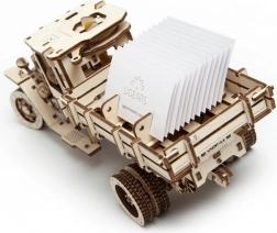 UGM-11 je vybavený prevodovkou s voľnobehom a spiatočkou, ovládaním rýchlosti (plynový pedál) a ručnou brzdou. Pružená predná náprava zabezpečuje plynulý pohyb, zatiaľ čo sklopné bočnice korby sú pripravené napríklad pre vaše vizitky. Model je navrhnutý a vyrobený na Ukrajine a poteší pri stavbe aj pri prevádzke.