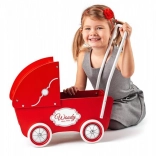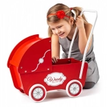 Červený drevený kočík pre bábiky s retro vzhľadom je ideálny pre deti od 3 rokov. Vďaka pevnému spracovaniu z dreva a hladko sa otáčajúcim kolieskam je kočík stabilný a ľahko ovládateľný doma aj na prechádzke.