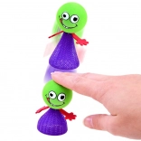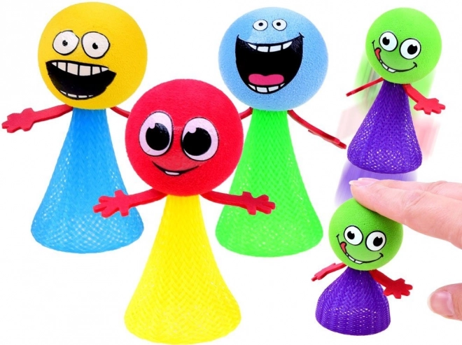 Veselý pružný škriatok, ktorý vyzerá ako badmintonové košíček, vás šikovne prekvapí. Stlačte škriatkovi prsty k zemi a sledujte, ako rýchlo vyletí nahor!