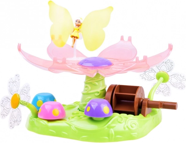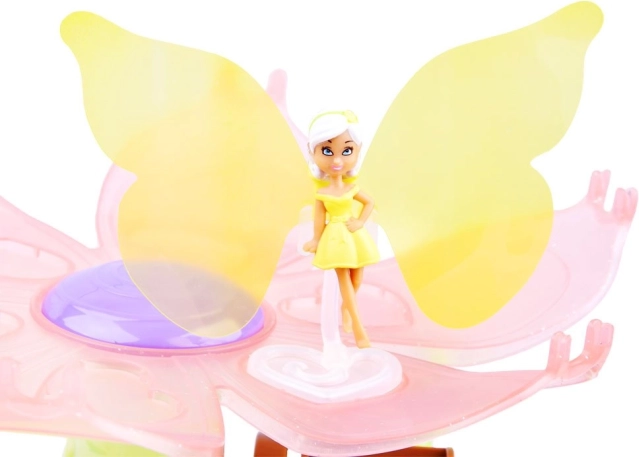 Vstúpte do sveta, kde vládne fantázia. Umiestnite vílu na veľký kvet, otočte pohodlnou kľukou a sledujte, ako sa kvet roztáča a víla sa ladne „roztancuje“. Táto interaktívna hračka prináša deťom radosť z pohybu a podporuje predstavivosť aj rozprávanie vlastných príbehov.