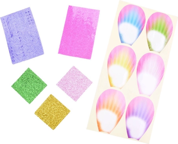 Súčasťou sady sú samolepky, trblietky a ozdoby, vďaka ktorým si deti môžu vytvoriť originálny dizajn krídel aj kvetov. Kombinácia tvorenia a hry rozvíja jemnú motoriku a cit pre farby a detaily – každý kvet aj víla budú jedinečné.