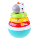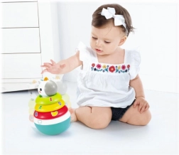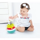 Tvarovaná základňa umožňuje hračke fungovať ako kývna hračka. Pri húpani vydáva príjemné hrkajúce zvuky, čím učí deti o príčine a následku.