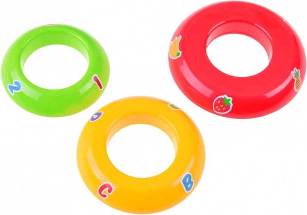 Skladanie farebných krúžkov podľa veľkosti pomáha deťom cvičiť manuálnu zručnosť, logické myslenie a rozpoznávanie farieb.