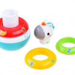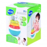 Dieťa sa učí koordinácii oka a ruky, keď sa hrá so skladacími krúžkami.