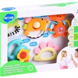 Farebné hrkálky a hryzátka sú navrhnuté tak, aby stimulovali zrak a sluch dieťaťa.