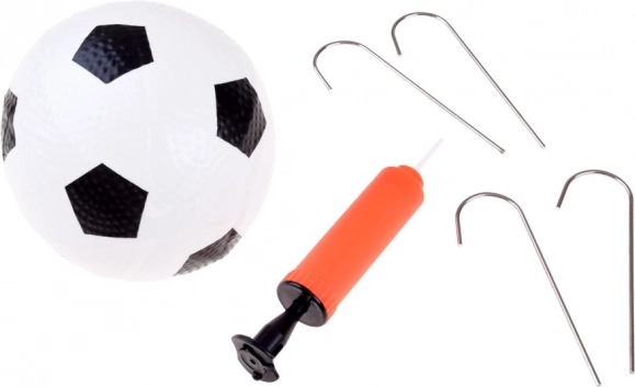 • Kompletná výbava: 2 bránky, lopta, pumpička, kolíky, puzdro