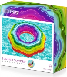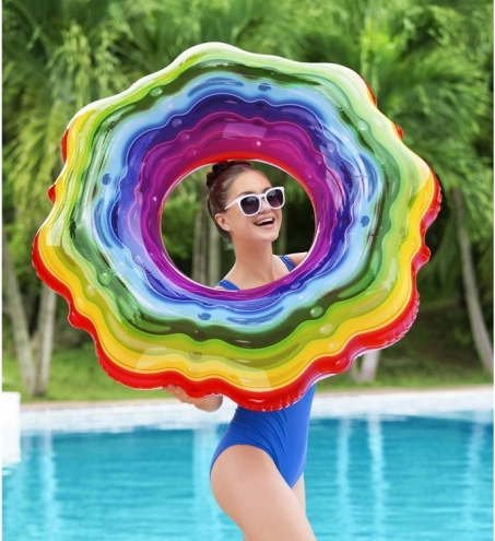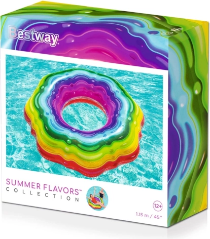 Vychutnajte si nekonečné vodné radovánky s veľkým nafukovacím kruhom od firmy Bestway. Tento kruh s priemerom 115 cm je vyrobený z odolného PVC, ktorý je odolný voči UV žiareniu a morskej vode. Tvar kruhu zabezpečuje pohodlné a bezstarostné leňošenie pri vode.