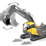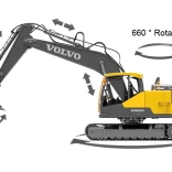 Vďaka plne funkčnému diaľkovému ovládaniu môžete rýpadlo plynulo riadiť ako v pred, tak vzad, tiež otáčať kabínu až o 660°.