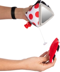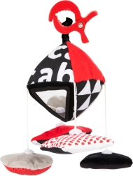 Čiernobiele vzory s červenými akcentmi a dvojica bezpečných zrkadielok prirodzene priťahujú pozornosť bábätka a podporujú sústredenie.