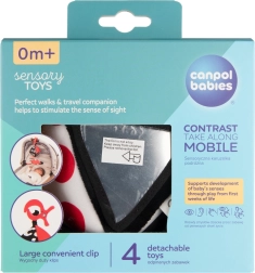 Kontrastná závesná hračka Canpol babies SENSORY je navrhnutá pre najmenšie deti od 0+. Vysoký kontrast farieb (čierna, biela, červená) napomáha prirodzenému rozvoju zraku, zatiaľ čo rozmanité textúry, zvuky a bezpečné zrkadielka podporujú zvedavosť a koncentráciu. Vďaka jednoduchému upevneniu klipom ju využijete doma aj na cestách.