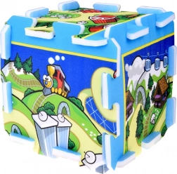 Vďaka zámkovým okrajom možno diely ľahko skladať do veľkej podložky, kocky alebo jednoduchých domčekov – zábava v plochom aj priestorovom svete.
