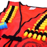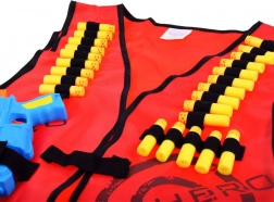 Súčasťou je červená vesta, modrá detská pištoľ a sada mäkkých nábojov – pripravené na hru hneď po vybalení.