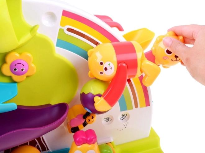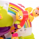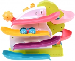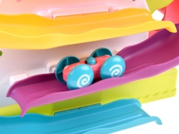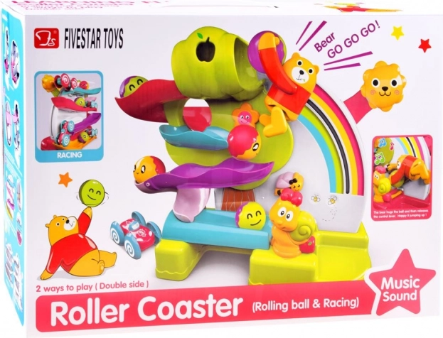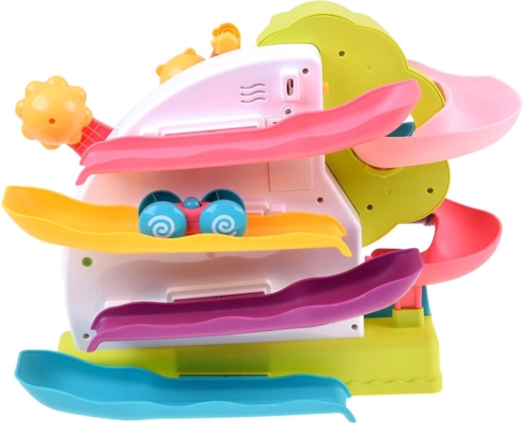Interaktívna dráha 2v1 zaujme živými farbami, roztomilými postavičkami a chytľavými efektmi. V režime guľôčok sa po zatiahnutí za páčku s hlavičkou levíčaťa guľôčka premiestni na najvyššiu úroveň a rozbehne sa po štyroch poschodiach nadol, za sprievodu veselej hudby s možnosťou nastavenia hlasitosti alebo úplného vypnutia. V režime autíčka stačí pustiť voz z vrchu a sledovať, ako sviští až do cieľa.