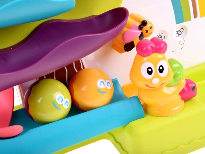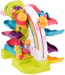 Dráha je vyrobená z kvalitného plastu v príjemných farbách a je ideálna na rozvoj jemnej motoriky, postrehu a koordinácie oko–ruka. Vďaka obojstrannému prevedeniu predlžuje hru a udržiava pozornosť detí po dlhý čas.