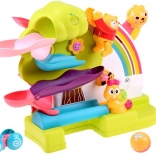 Veselá melódia sprevádza jazdu guľôčok. Hlasitosť možno upraviť alebo zvuk úplne vypnúť – ideálne na hranie doma aj na cestách.