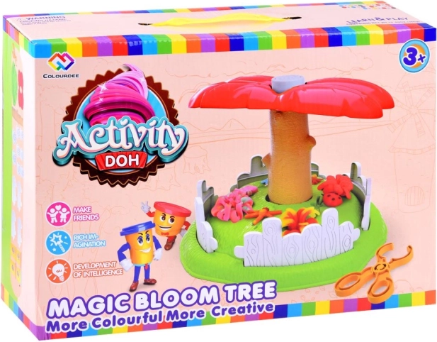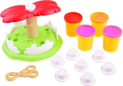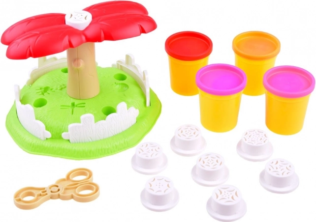 Sada obsahuje všetko potrebné na vytvorenie vlastného stromu s podstavcom, štyri farebné tégliky s plastelínou a nadstavce na vytláčanie tvarov.