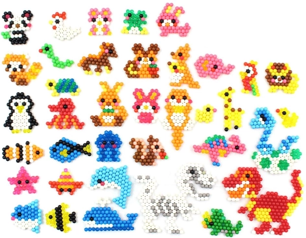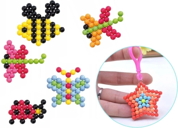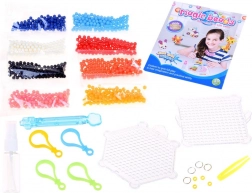 Obsah balenia: Kniha s vzormi, 8 sáčkov s korálkami rôznych farieb, aplikátor, pinzeta, fľaša na vodu, prívesky, 2 základné dosky.