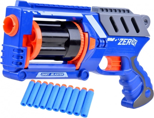 Pištoľ Blaster prináša vzrušujúcu zábavu, ktorá vás a vašich priateľov vtiahne do deja. Nabíjanie nábojov je jednoduché – stačí vložiť náboje do zásobníku, ktorý sa odistí stlačením oranžového tlačidla na ľavej strane pištole.