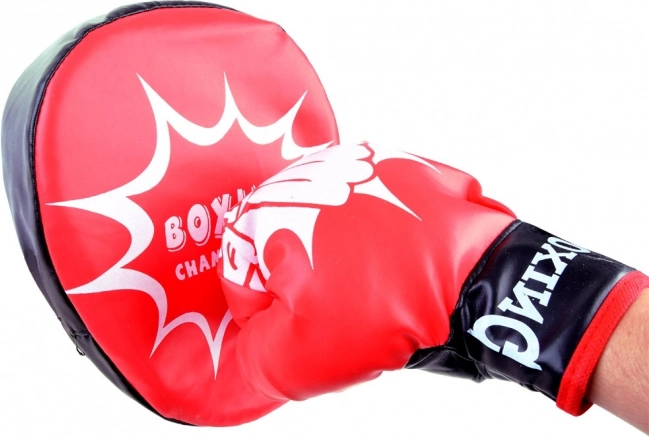- Dve boxerské rukavice – rozmery 26 x 16 x 7 cm, ktoré sa dokonale prispôsobia detskej ruke, zaručujúce pohodlie pri používaní.